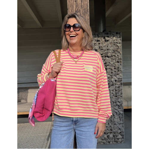 Tags: BISOUS PARIS roze/geel, achterkant ietsje langer, past tm maat 42/44, SHIRTS, TRUIEN & SWEATERS
