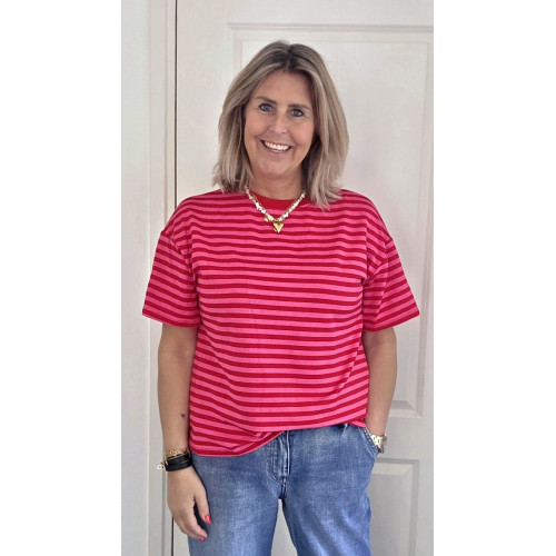 STREEP T-SHIRT rood/roze