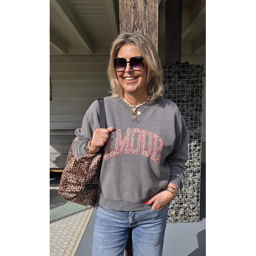 SWEATER AMOUR grijs/roze