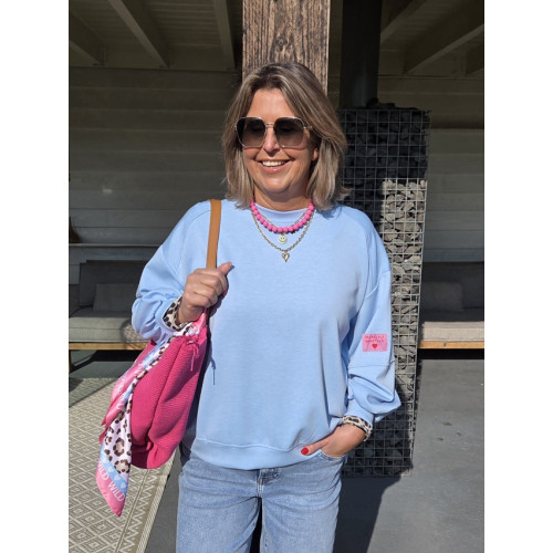 Tags: SWEATER MEXIE licht blauw, achterkant ietsje langer, past tm maat 42, TRUIEN & SWEATERS