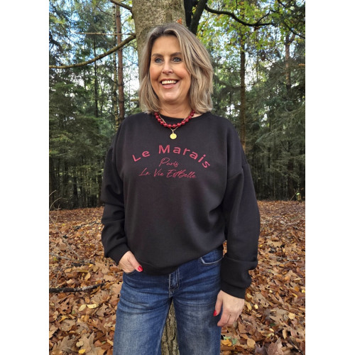 Tags: LE MARAIS zwart/bordeaux, oversized model, past tm maat 42/44, TRUIEN & SWEATERS